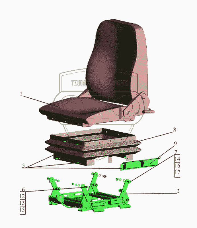 Каталог запасных частей к технике: МАЗ-533731. Сиденье водителя 6430-6800010