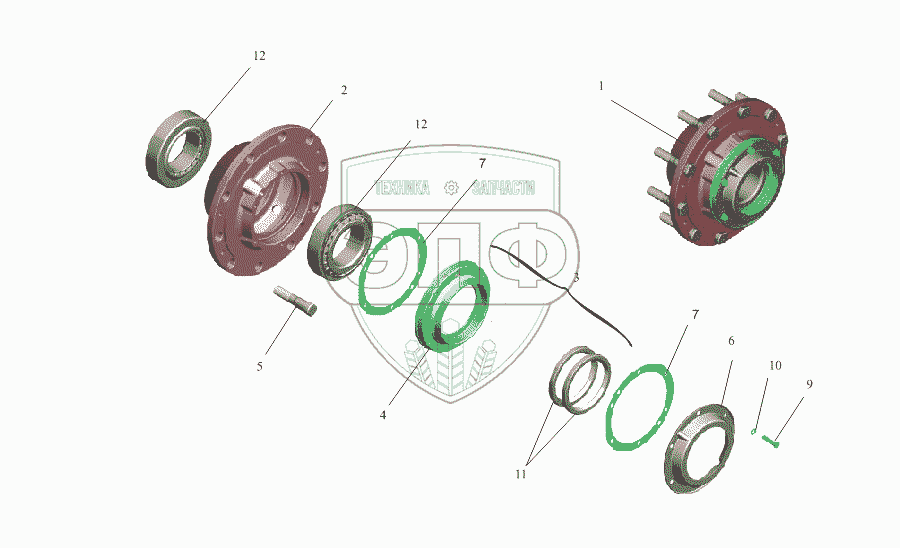Каталог запасных частей к технике: МАЗ-533731. Ступица заднего моста