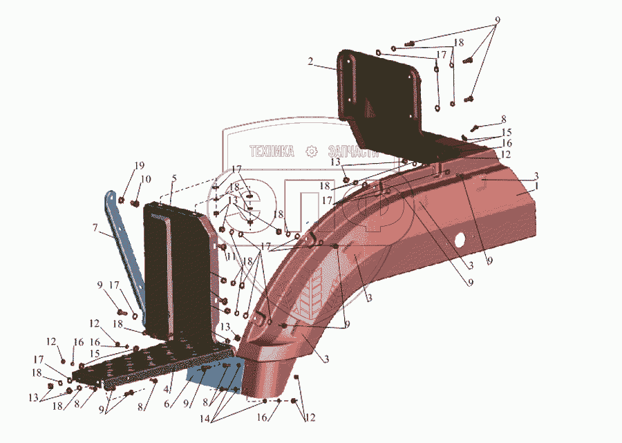 Каталог запасных частей к технике: МАЗ-533731. Установка оперения 555102-8400020