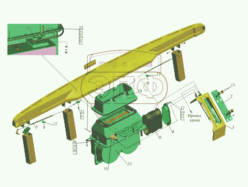 Каталог запасных частей к технике: МАЗ-533731. Установка отопителя