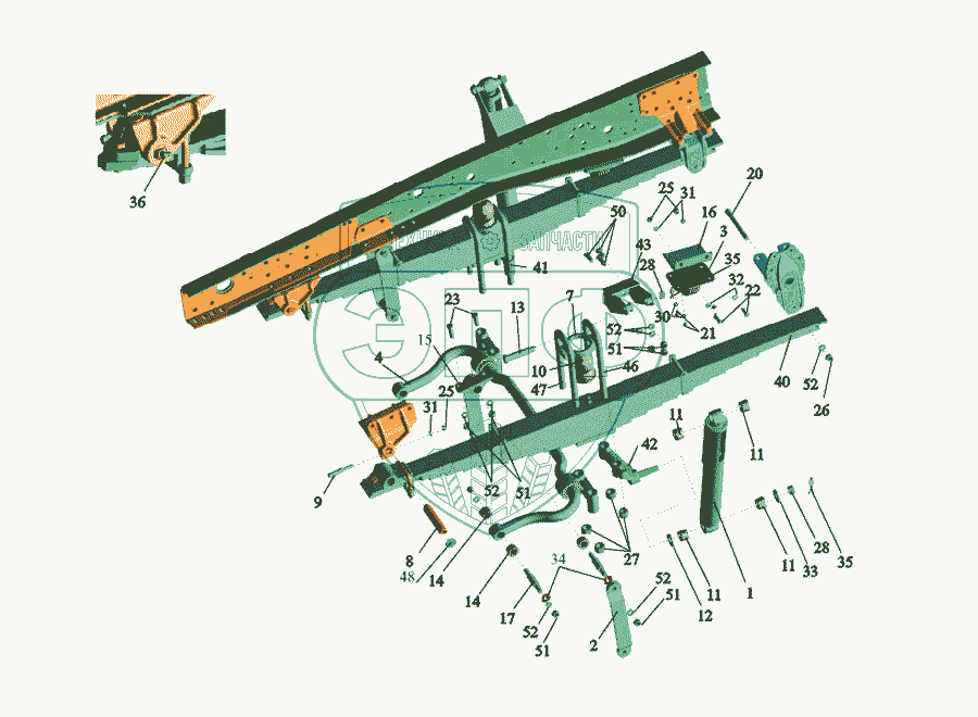 Каталог запасных частей к технике: МАЗ-533731. Установка подвески передней 551605-2900001