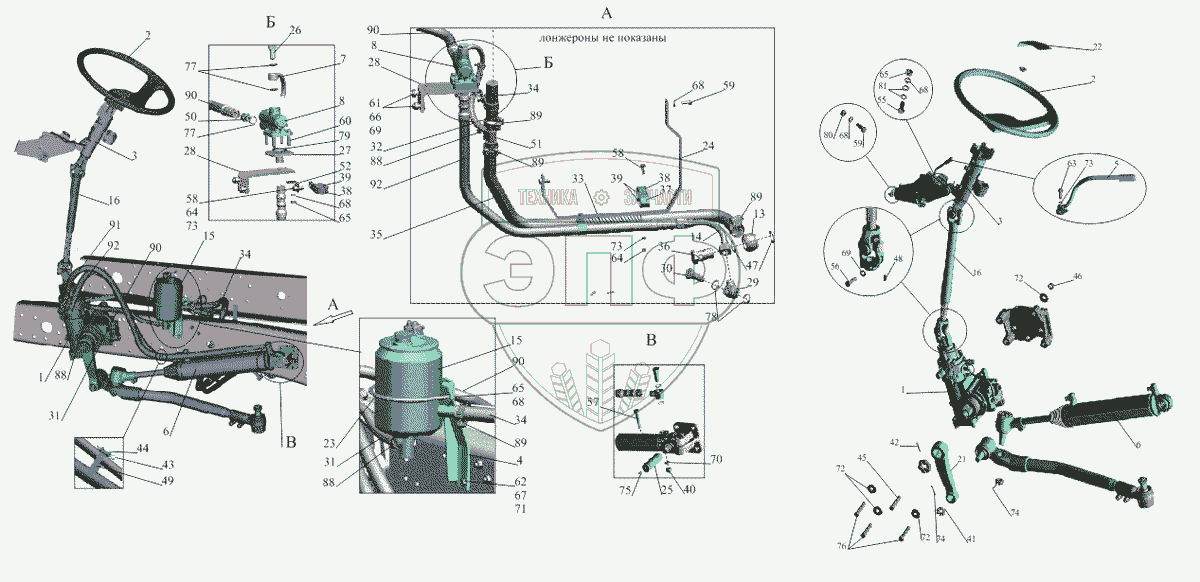 Каталог запасных частей к технике: МАЗ-533731. Установка рулевого управления 533731-3400001