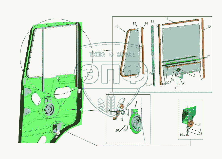 Каталог запасных частей к технике: МАЗ-533731. Установка стеклоподъемника