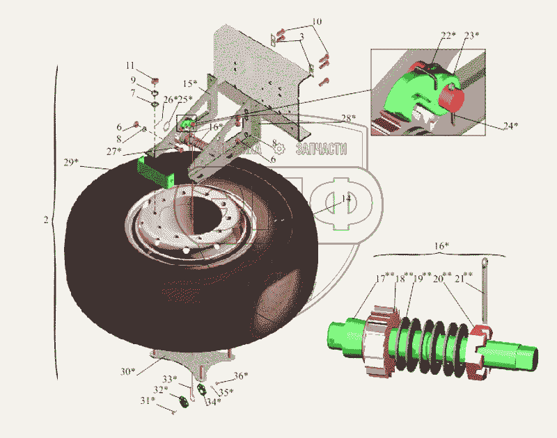 Каталог запасных частей к технике: МАЗ-533731. Установка запасного колеса
