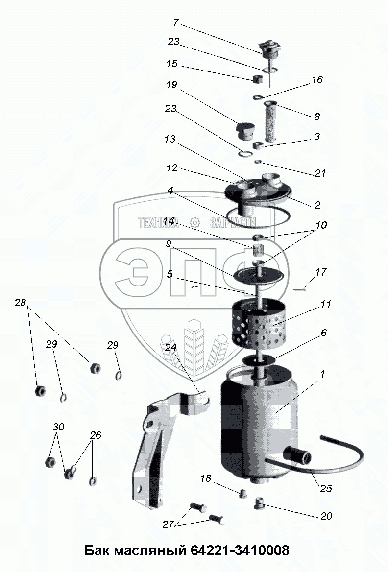 Каталог запасных частей к технике: МАЗ-533731. Бак масляный 64221-3410008