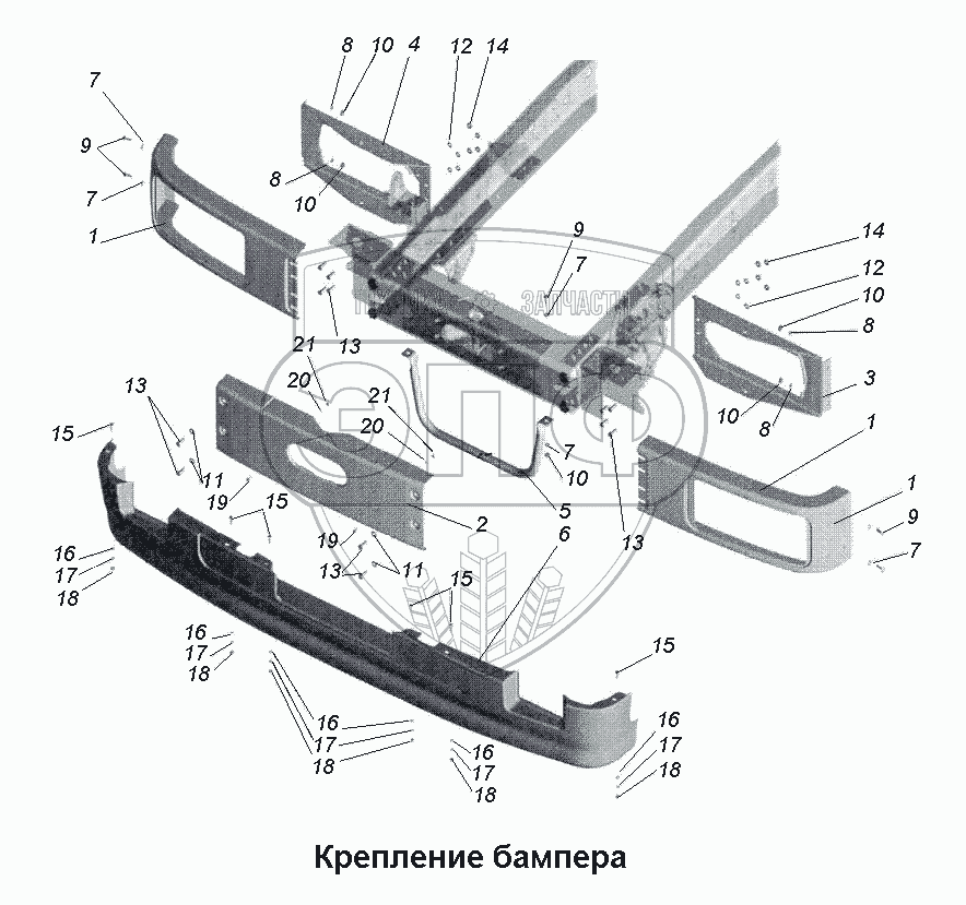 Каталог запасных частей к технике: МАЗ-533731. Крепление бампера