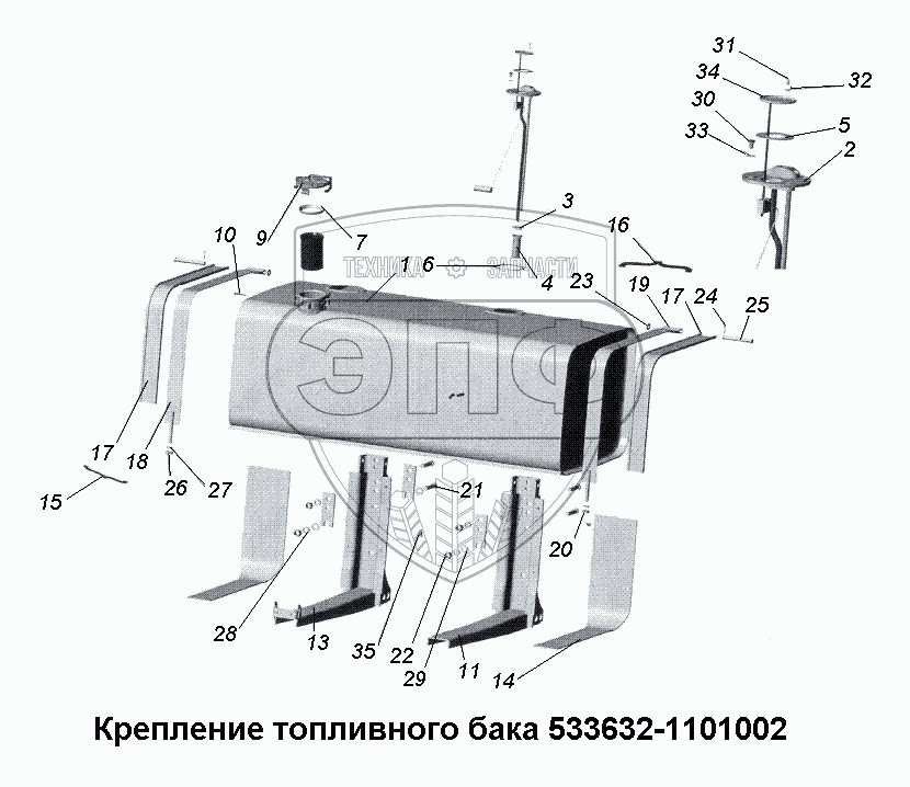 Каталог запасных частей к технике: МАЗ-533731. Крепление топливного бака 533632-1101002