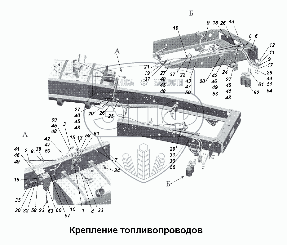 Каталог запасных частей к технике: МАЗ-533731. Крепление топливопроводов (2)