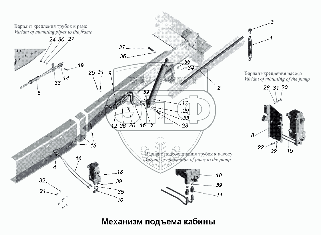 Каталог запасных частей к технике: МАЗ-533731. Механизм подъема кабины