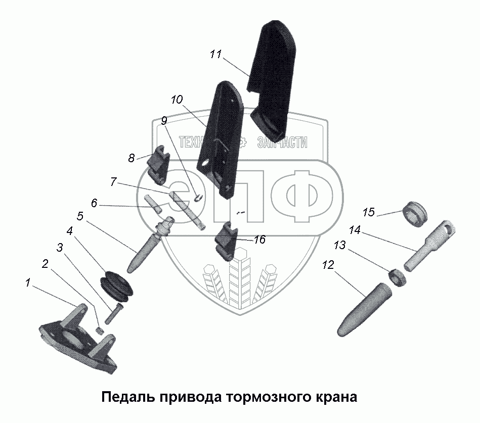 Каталог запасных частей к технике: МАЗ-533731. Педаль привода тормозного крана