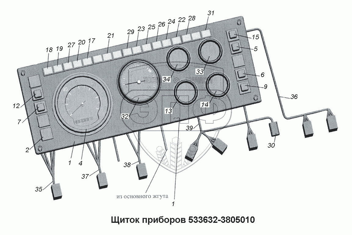 Каталог запасных частей к технике: МАЗ-533731. Щиток приборов 533632-3805010
