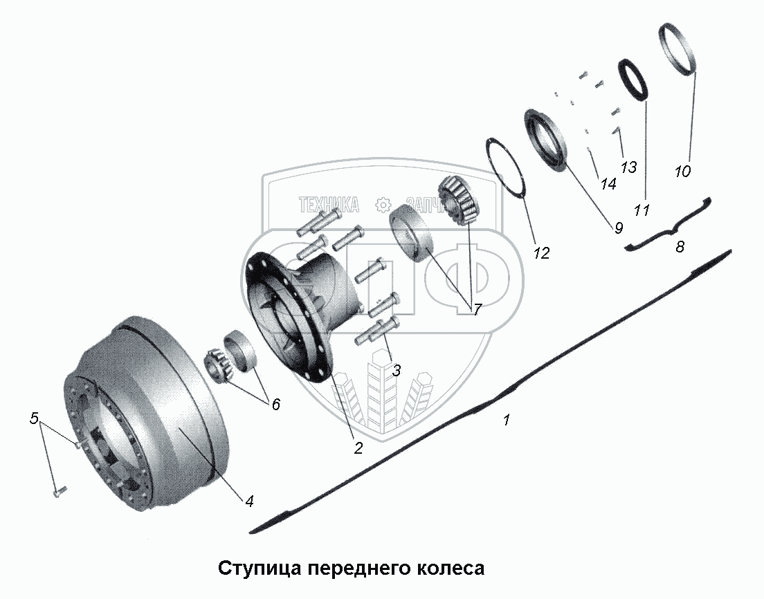 Каталог запасных частей к технике: МАЗ-533731. Ступица переднего колеса