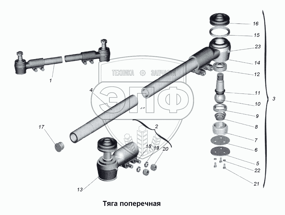 Каталог запасных частей к технике: МАЗ-533731. Тяга поперечная