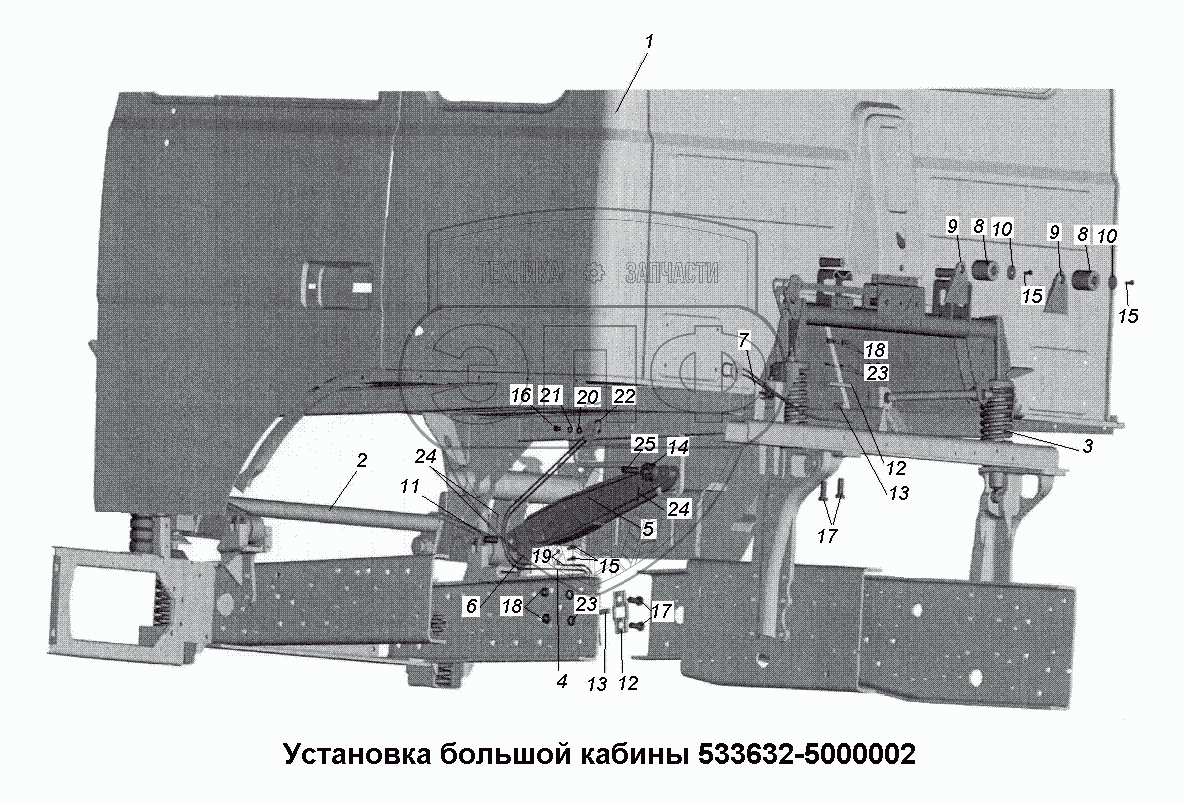 Каталог запасных частей к технике: МАЗ-533731. Установка большой кабины 533632-5000002