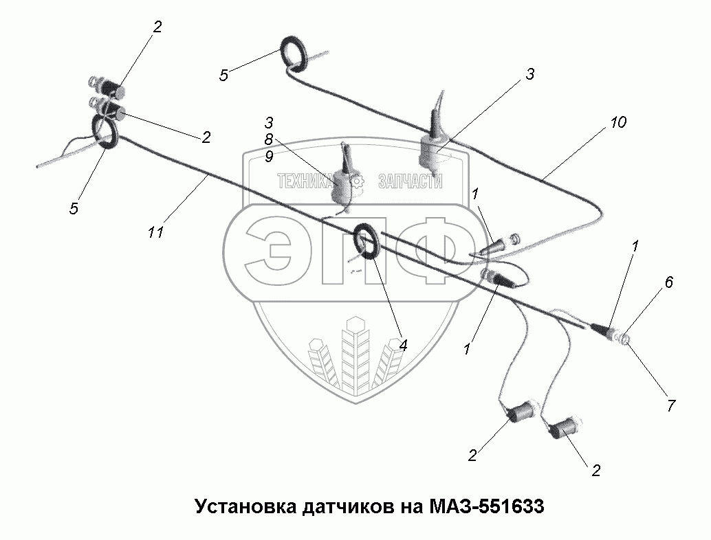 Каталог запасных частей к технике: МАЗ-533731. Установка датчиков на МАЗ-551633