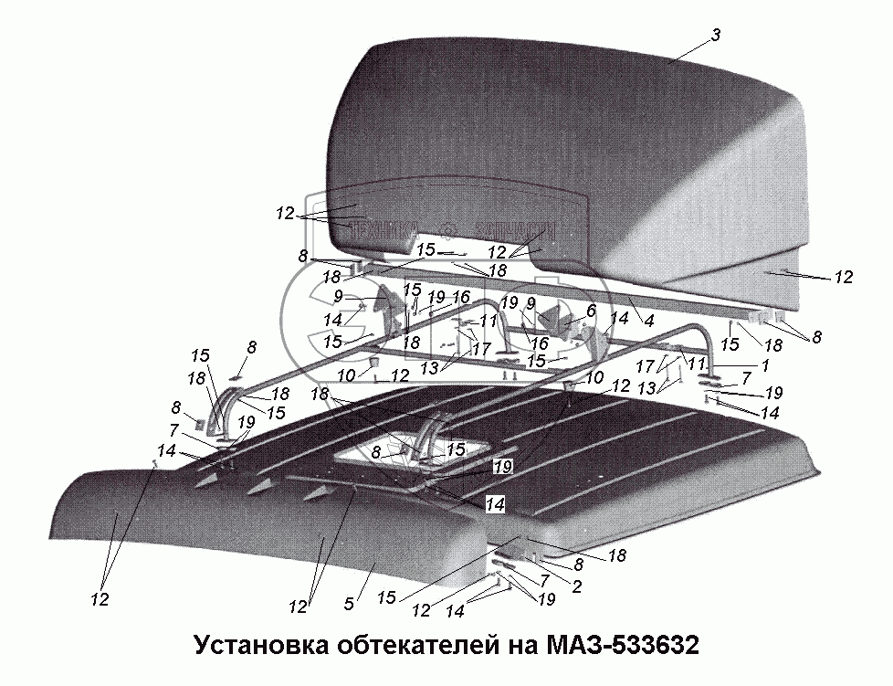 Каталог запасных частей к технике: МАЗ-533731. Установка обтекателей на МАЗ-533632