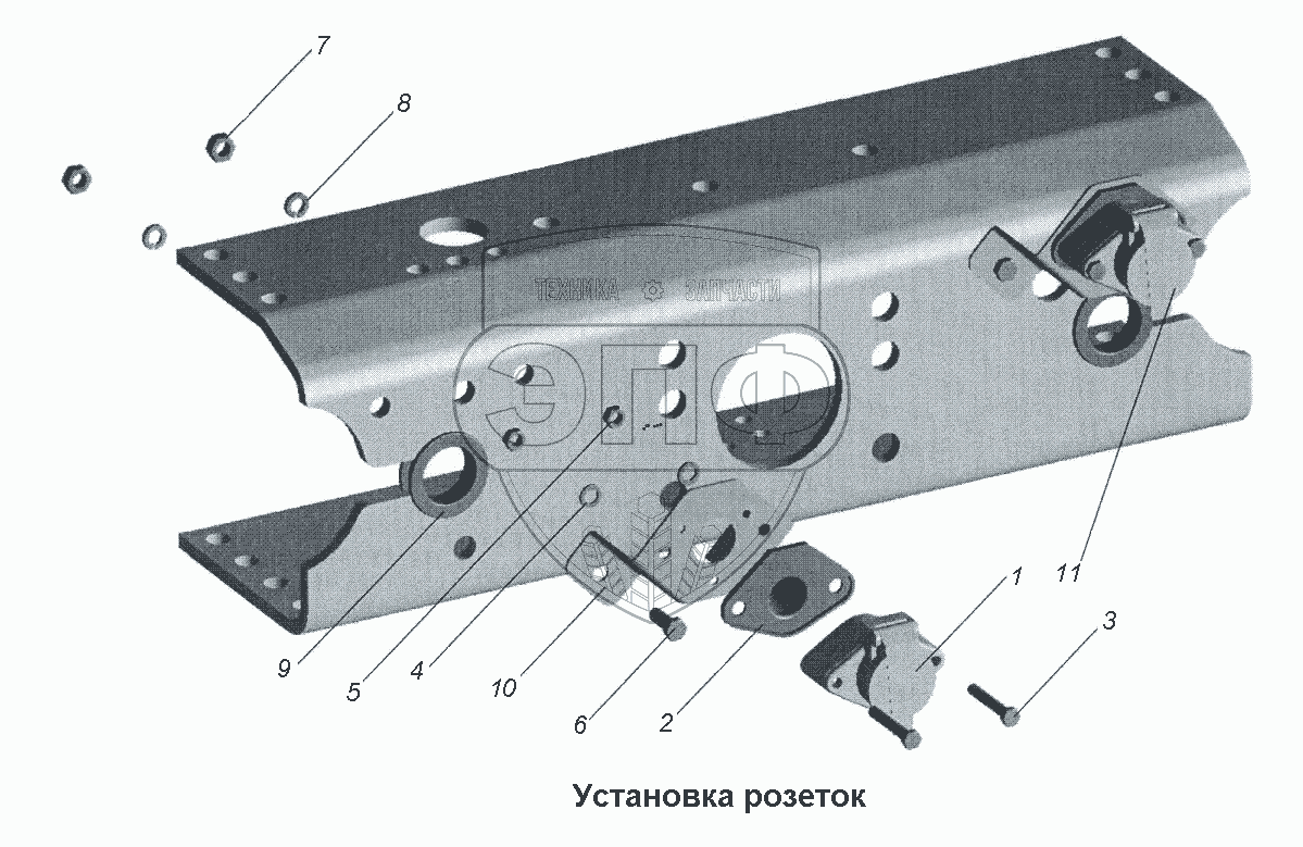 Каталог запасных частей к технике: МАЗ-533731. Установка розеток