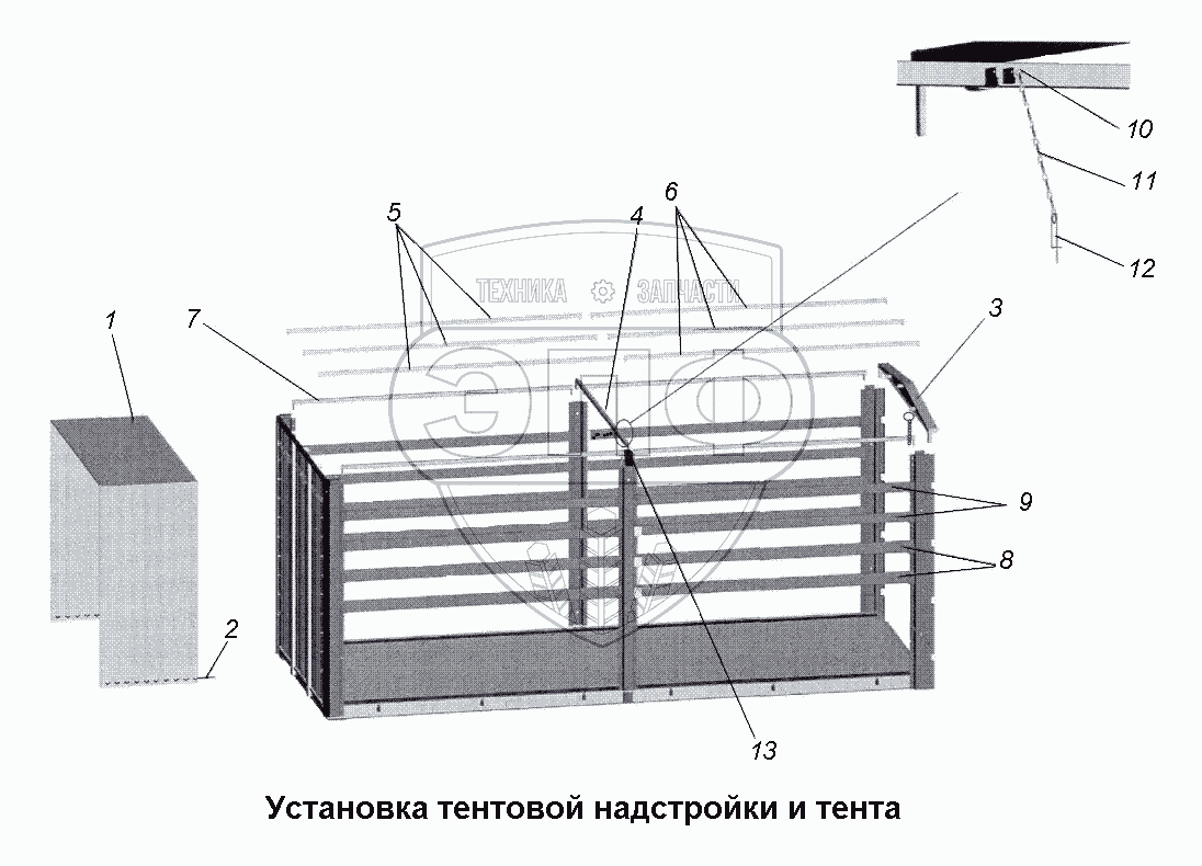 Каталог запасных частей к технике: МАЗ-533731. Установка тентовой надстройки и тента
