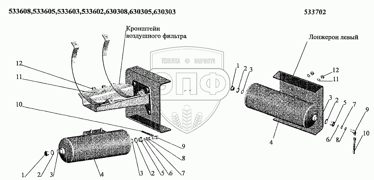 Каталог запасных частей к технике: МАЗ-5337 (2005). Ресивер регенерации