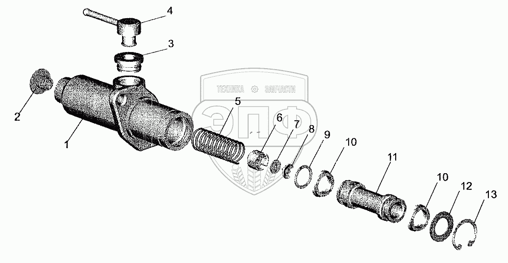 Каталог запасных частей к технике: МАЗ-5337 (2005). Цилиндр подпедальный 6430-1602510