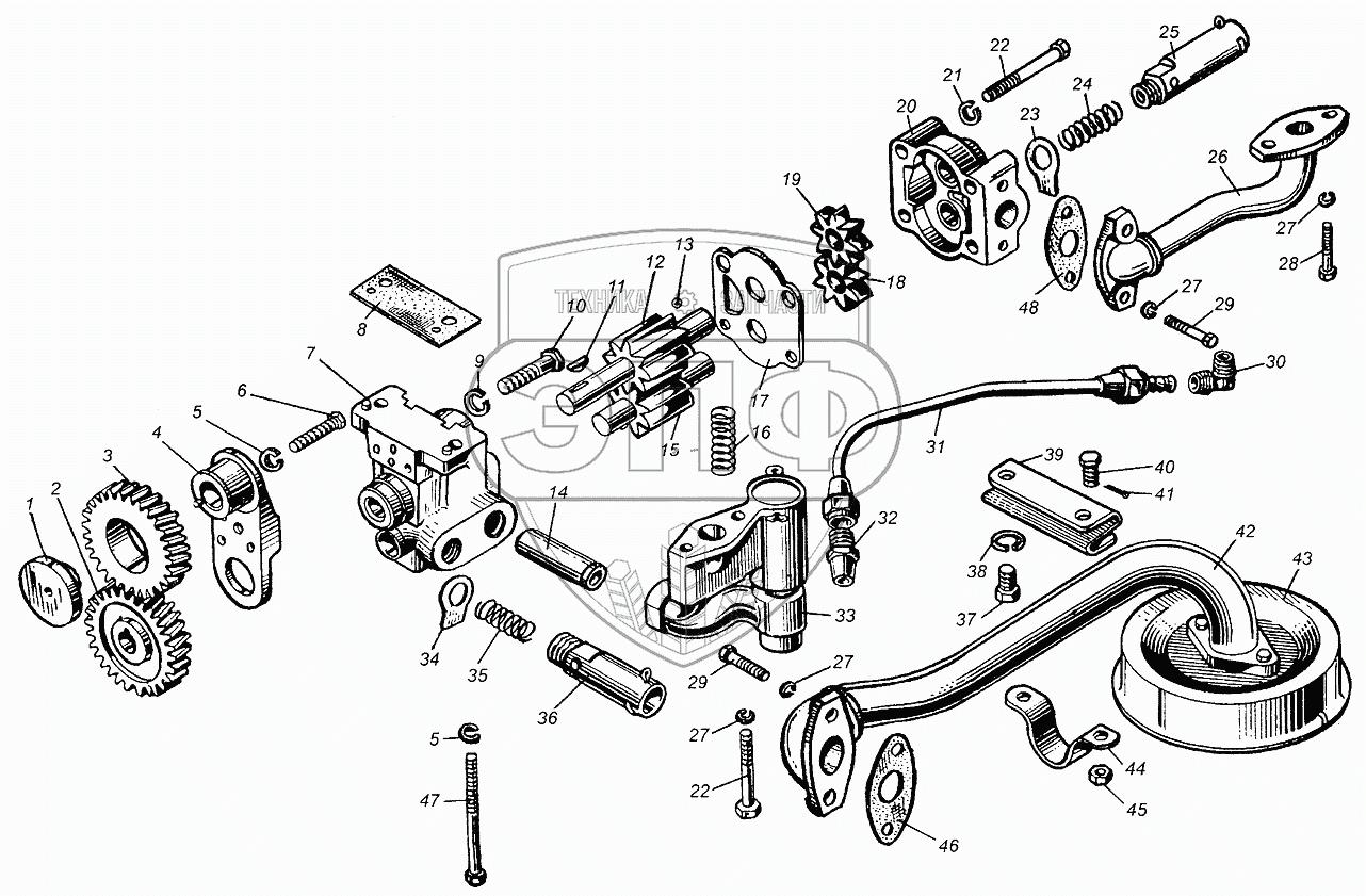 Каталог запасных частей к технике: МАЗ-5429. Насос масляный