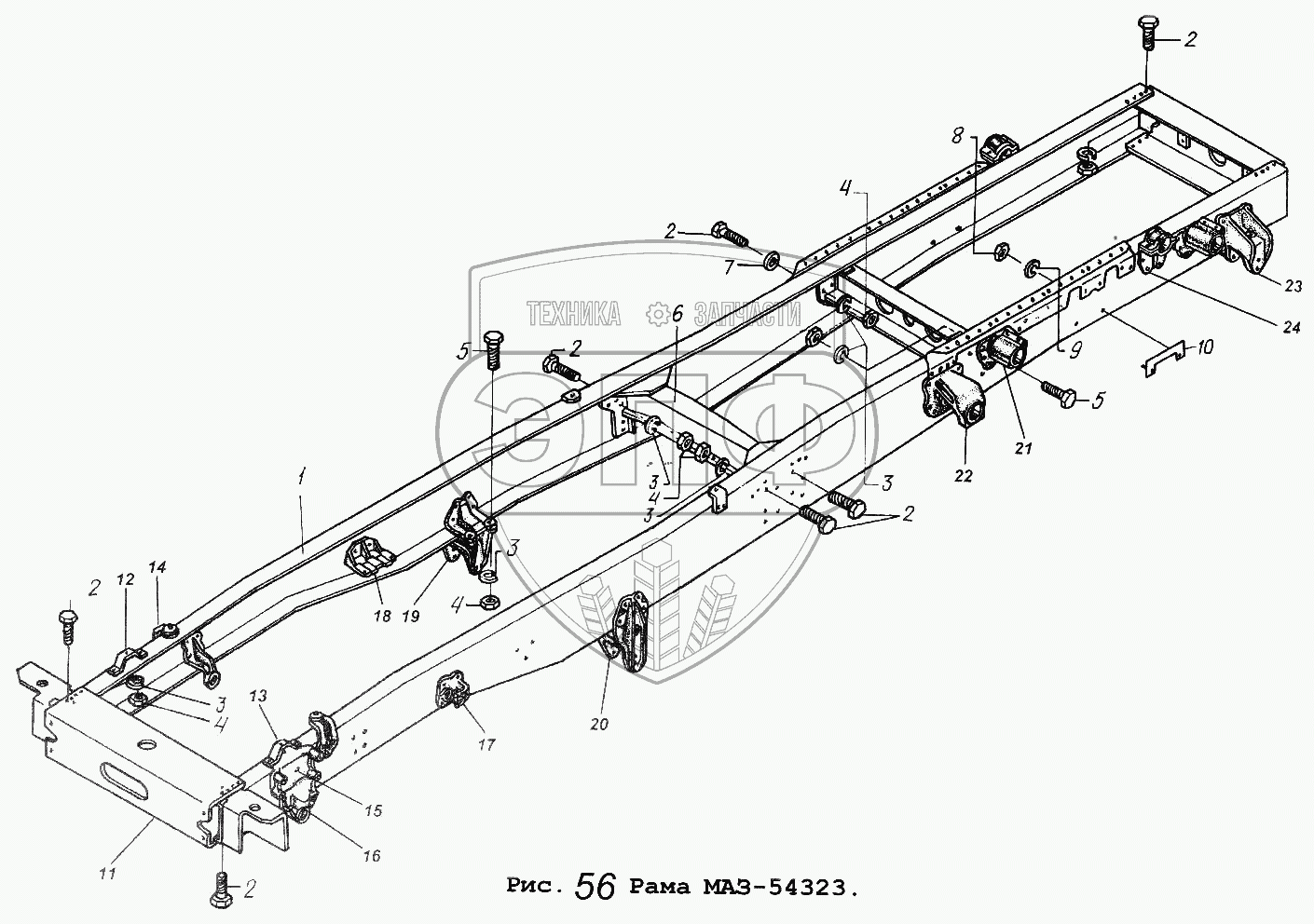 Каталог запасных частей к технике: МАЗ-54323. Рама МАЗ-54323