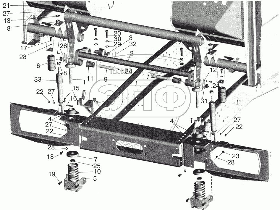 Каталог запасных частей к технике: МАЗ-5432. Переднее подрессоривание большой кабины