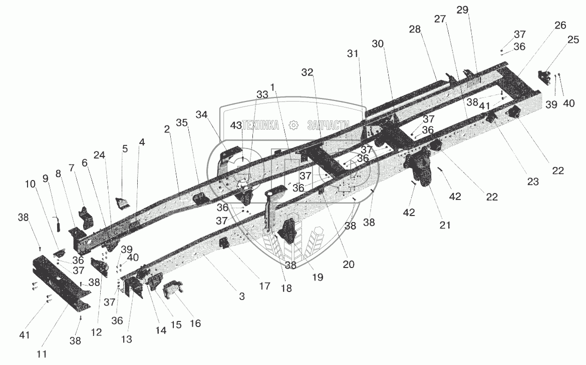 Каталог запасных частей к технике: МАЗ-5432. Рама 543205, 543208-пневмоподвеска