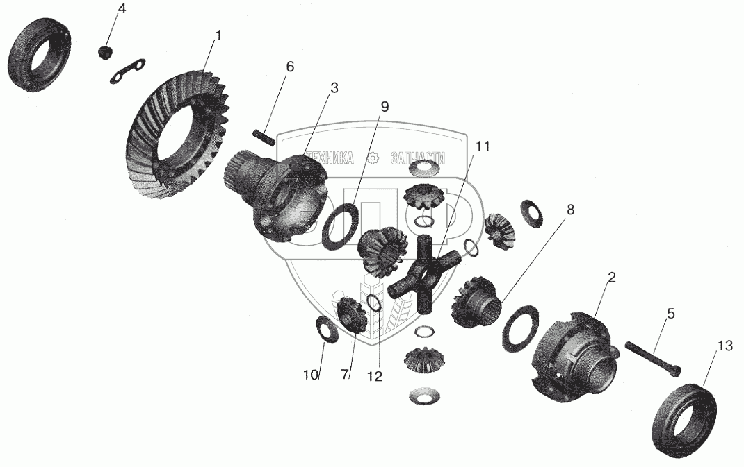Каталог запасных частей к технике: МАЗ-5432. Редуктор среднего моста. Дифференциал