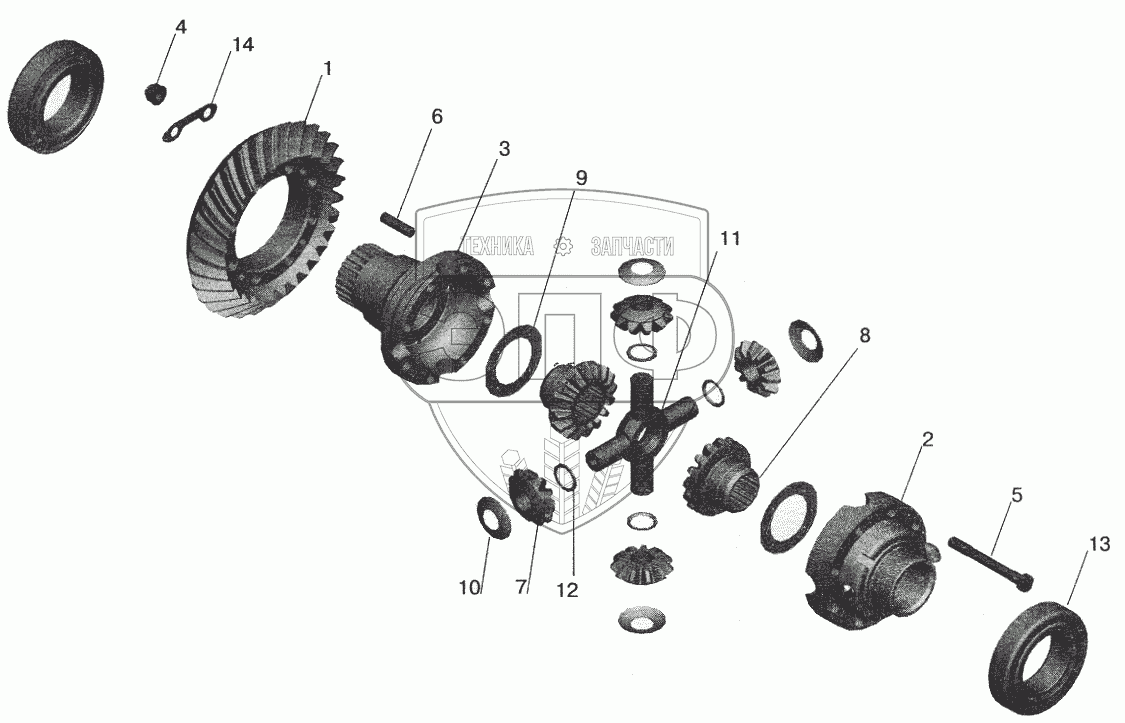 Каталог запасных частей к технике: МАЗ-5432. Редуктор заднего моста. Дифференциал