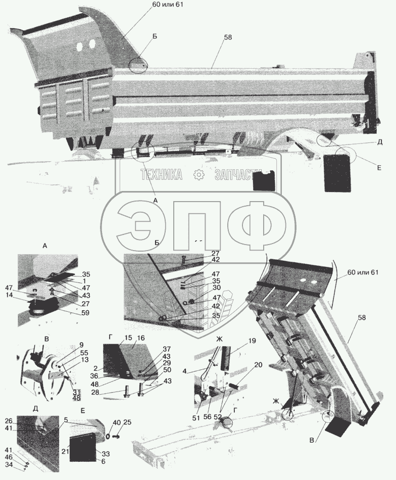 Каталог запасных частей к технике: МАЗ-5432. Установка платформы 555102-8500002