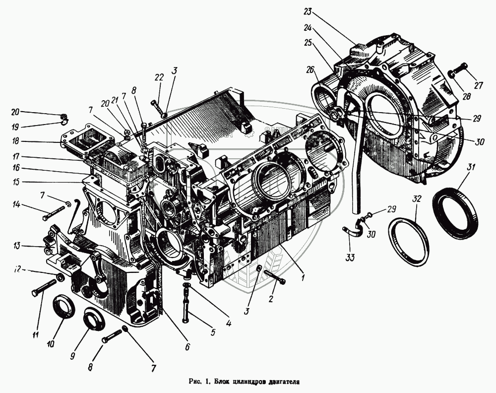 Каталог запасных частей к технике: МАЗ-5433. Блок цилиндров двигателя