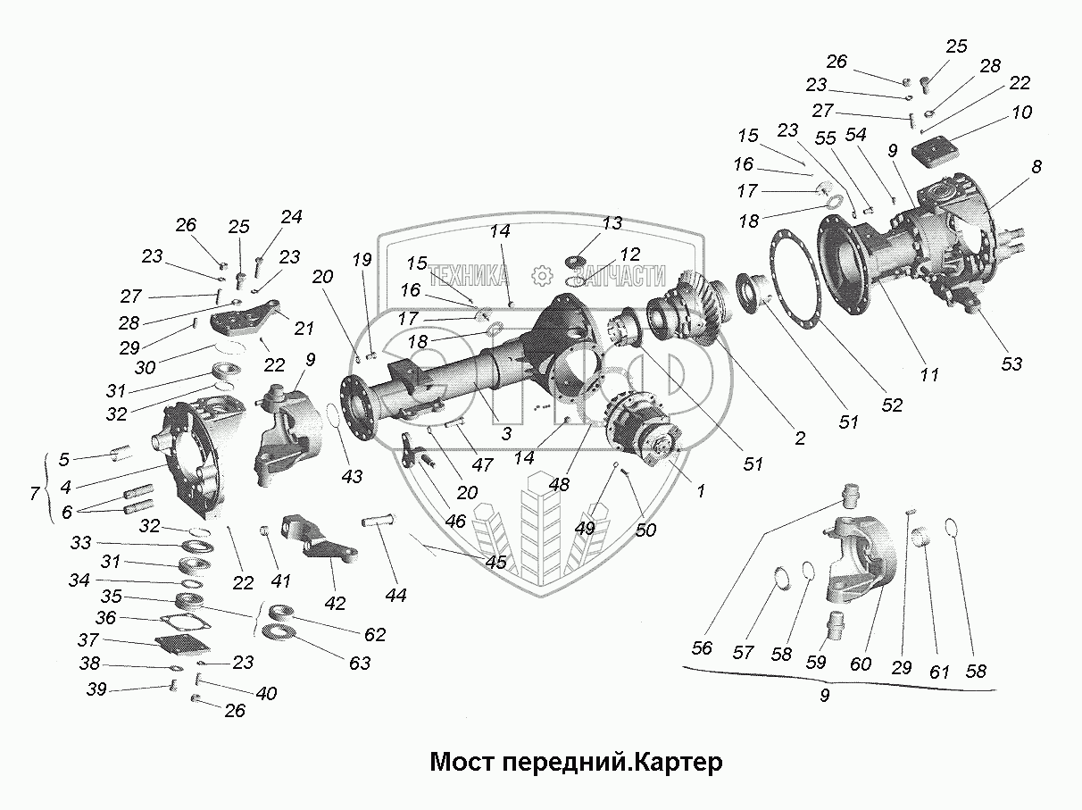 Каталог запасных частей к технике: МАЗ-543403, 641705, 641708. Мост передний. Картер