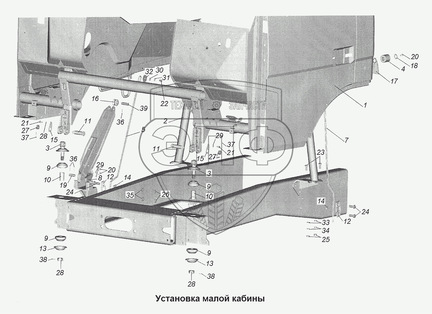 Каталог запасных частей к технике: МАЗ-543403, 641705, 641708. Установка малой кабины