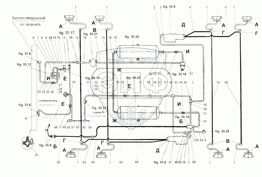 Каталог запасных частей к технике: МАЗ-543 (7310). Установка трубопроводов 543M