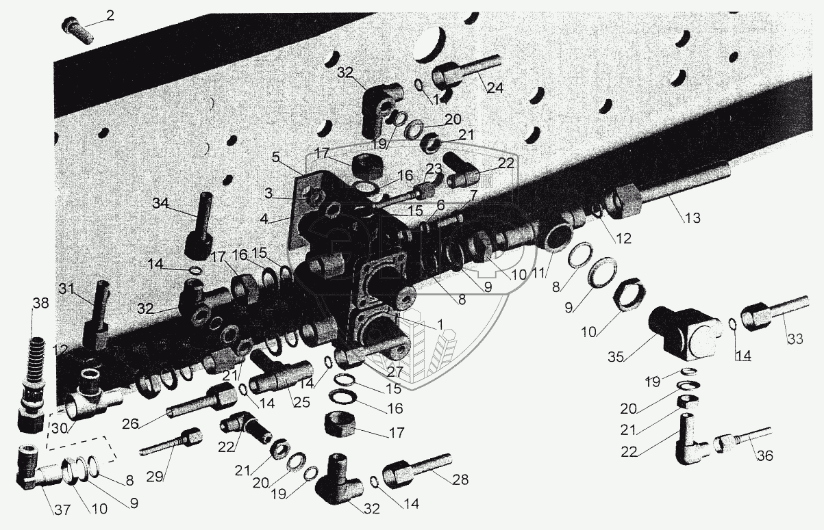 Каталог запасных частей к технике: МАЗ-544069. Крепление четырехконтурного клапана