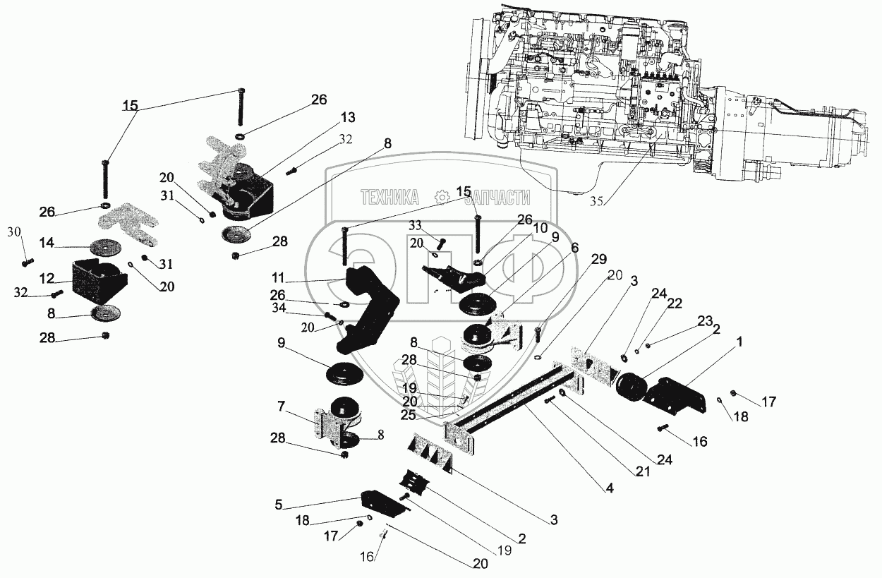 Каталог запасных частей к технике: МАЗ-544069. Крепление двигателя 643069-1001002