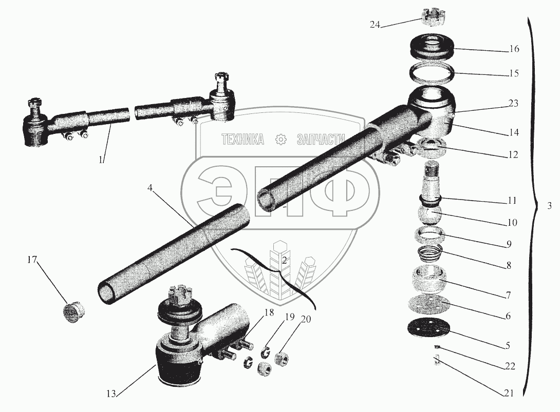 Каталог запасных частей к технике: МАЗ-544069. Тяга поперечная рулевая 6430-3003052