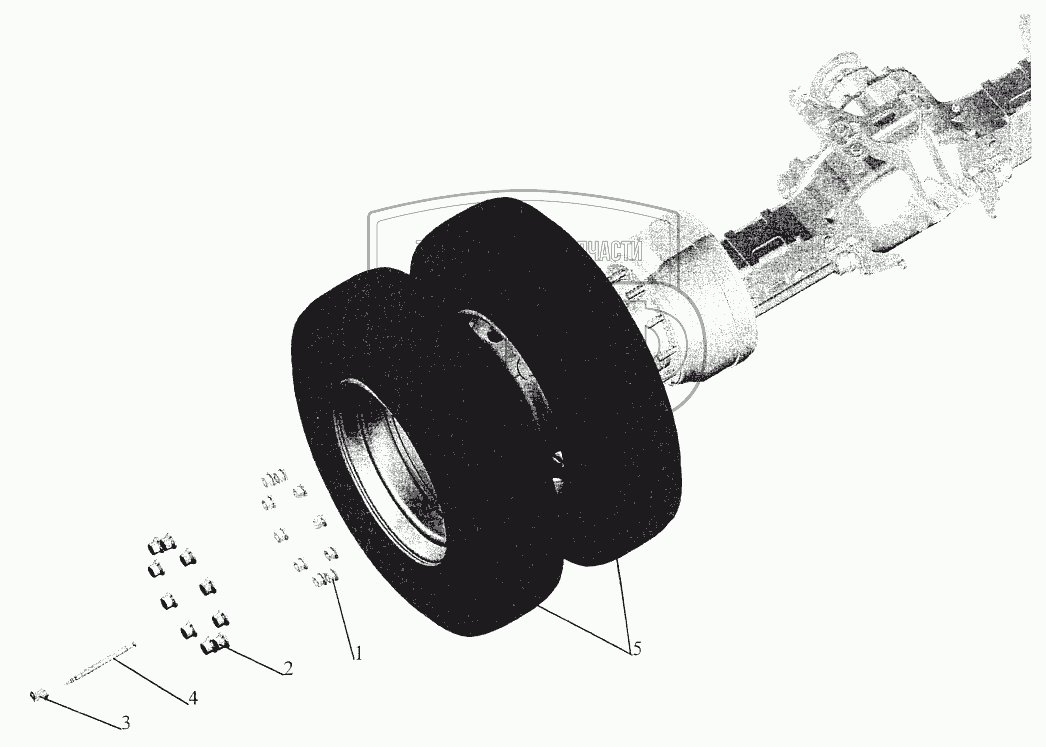 Каталог запасных частей к технике: МАЗ-544069. Установка задних колес