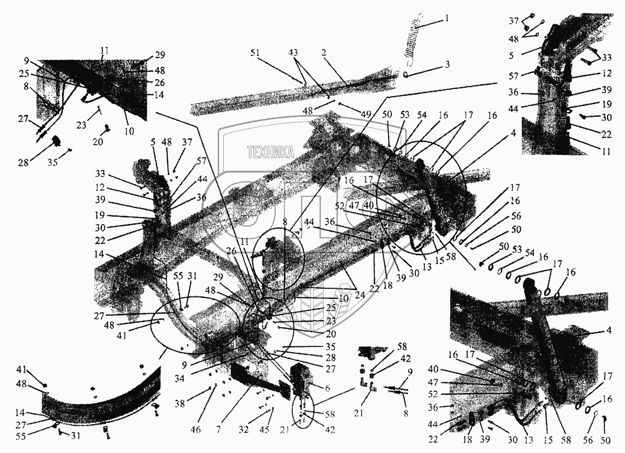 Каталог запасных частей к технике: МАЗ-5440. Механизм подъема кабины