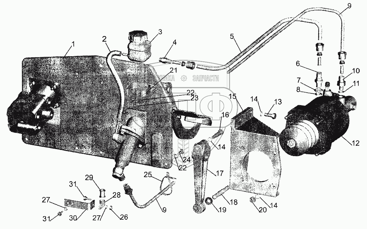 Каталог запасных частей к технике: МАЗ-5440. Механизм управления сцеплением