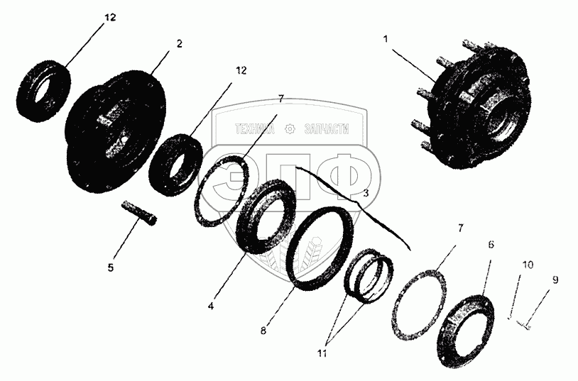 Каталог запасных частей к технике: МАЗ-5440. Ступица заднего моста