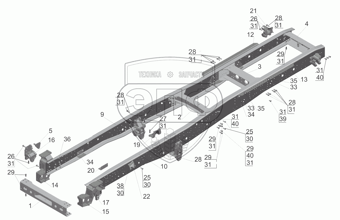 Каталог запасных частей к технике: МАЗ-5440B9, 6430B9. Рама 5440В9-2801002-030