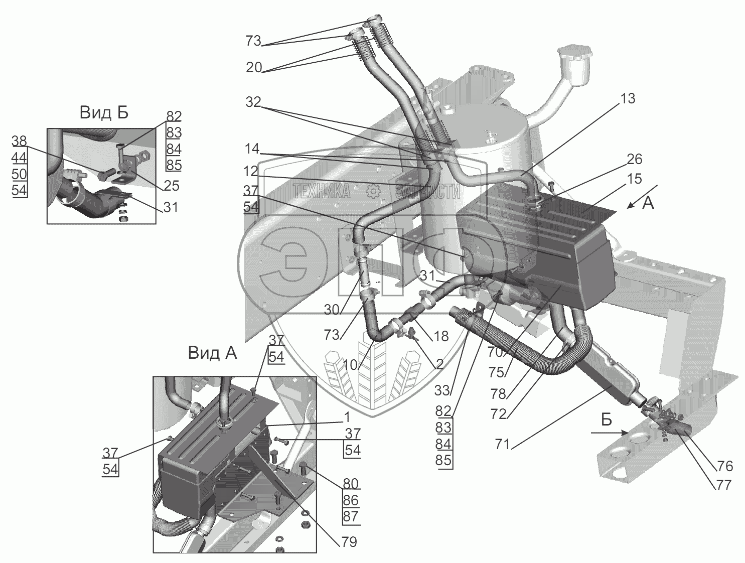 Каталог запасных частей к технике: МАЗ-5440B9, 6430B9. Установка подогревателя 555035-1015001