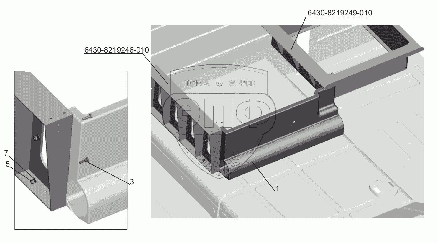 Каталог запасных частей к технике: МАЗ-5440B9, 6430B9. Установка стенки 6430-8200041