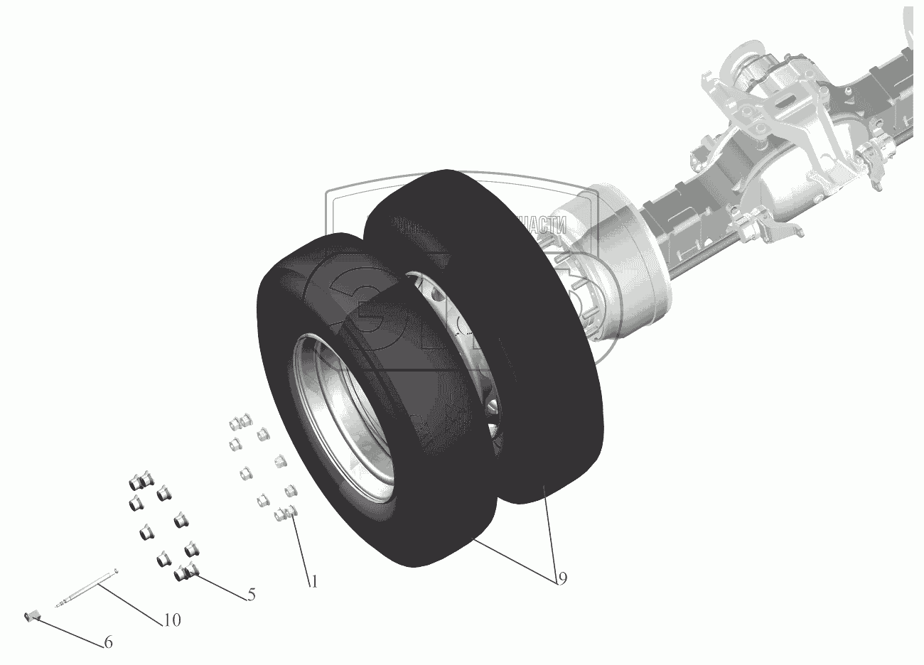 Каталог запасных частей к технике: МАЗ-5440B9, 6430B9. Установка задних колес