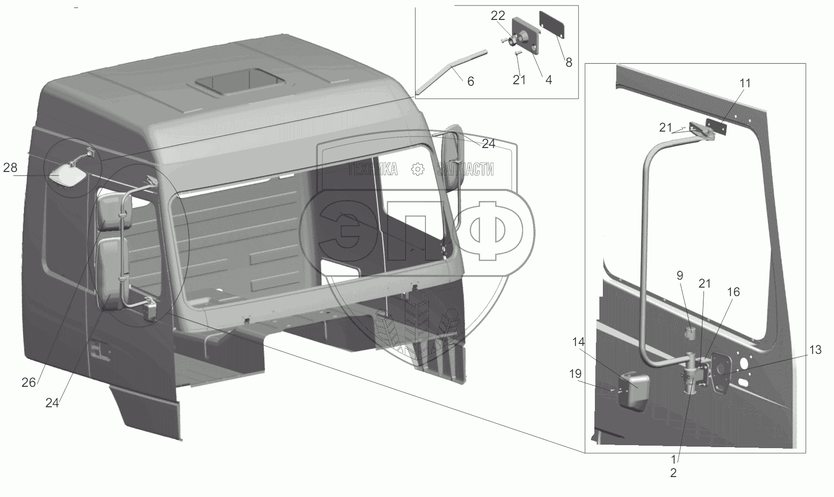 Каталог запасных частей к технике: МАЗ-5440B9, 6430B9. Установка зеркал 6430-8200005