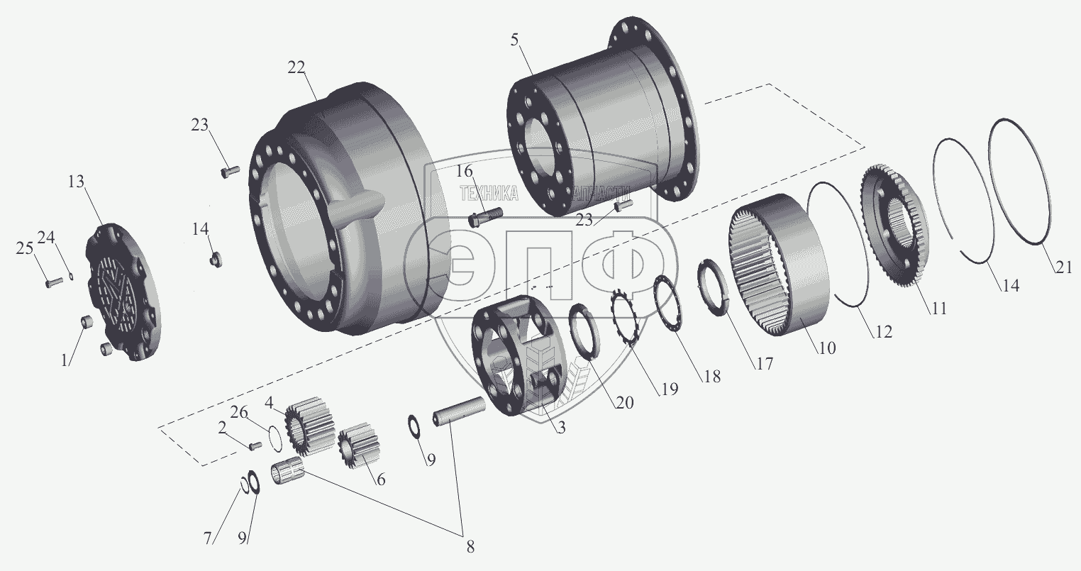 Каталог запасных частей к технике: МАЗ-551605. Колесный редуктор заднего моста