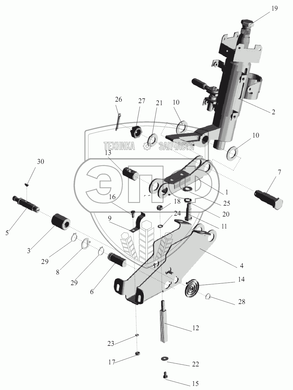 Каталог запасных частей к технике: МАЗ-551605. Кронштейн с колонкой 64221-3403008