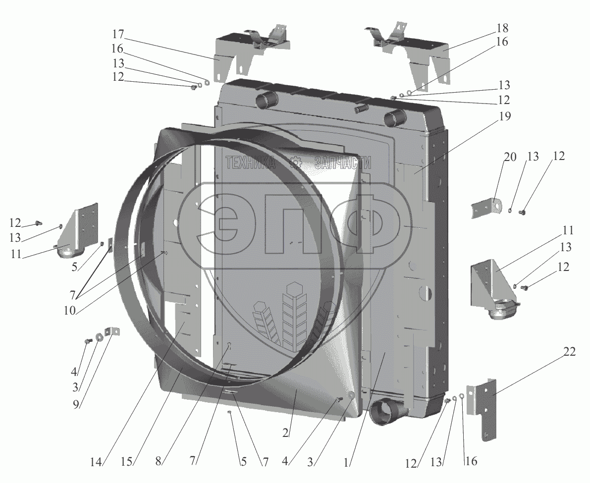 Каталог запасных частей к технике: МАЗ-551605. Радиатор с кожухом